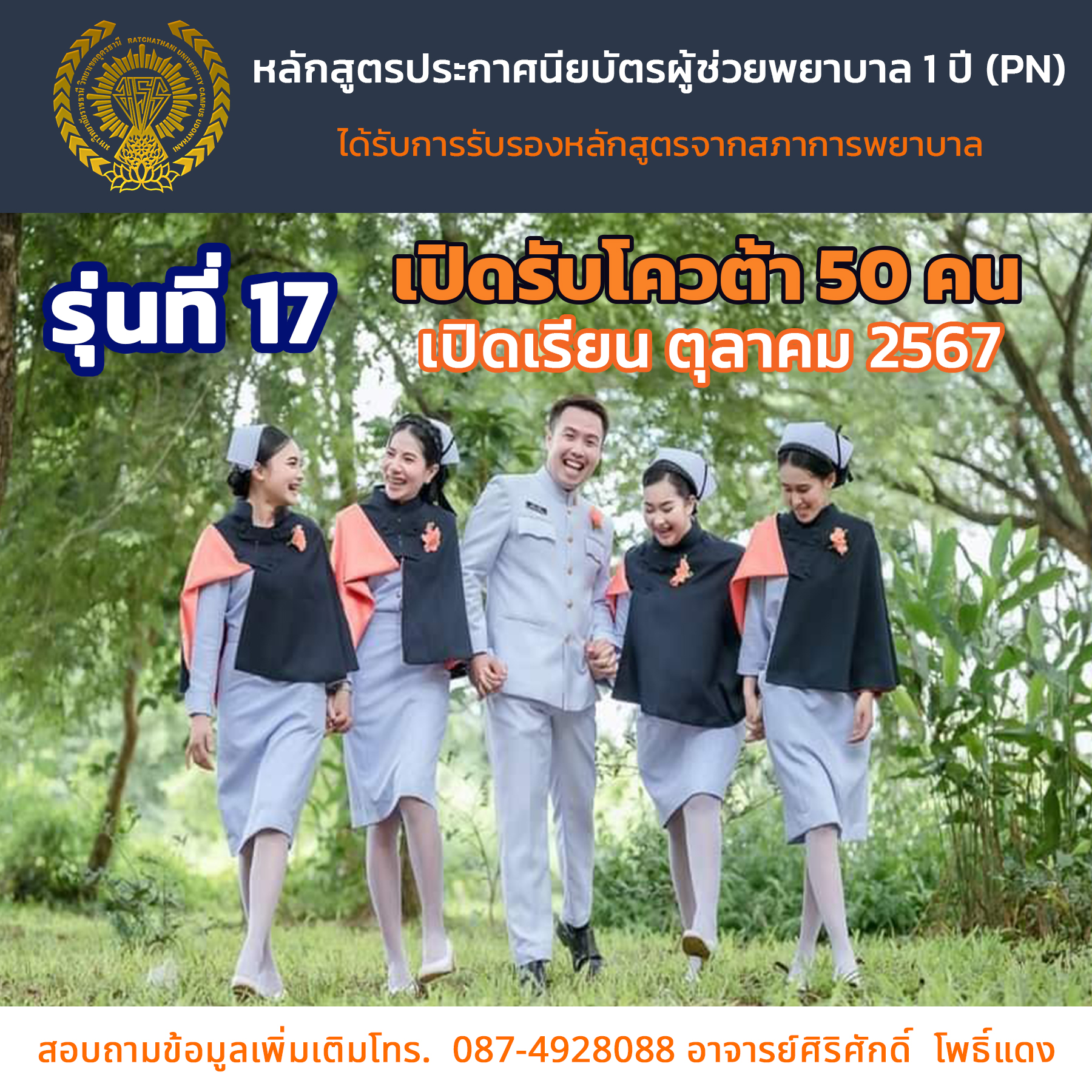 ผู้ช่วยพยาบาล (PN) รุ่นที่ 17 เปิดเรียนเดือนตุลาคม 2567 สามารถสมัครได้แล้ววันนี้